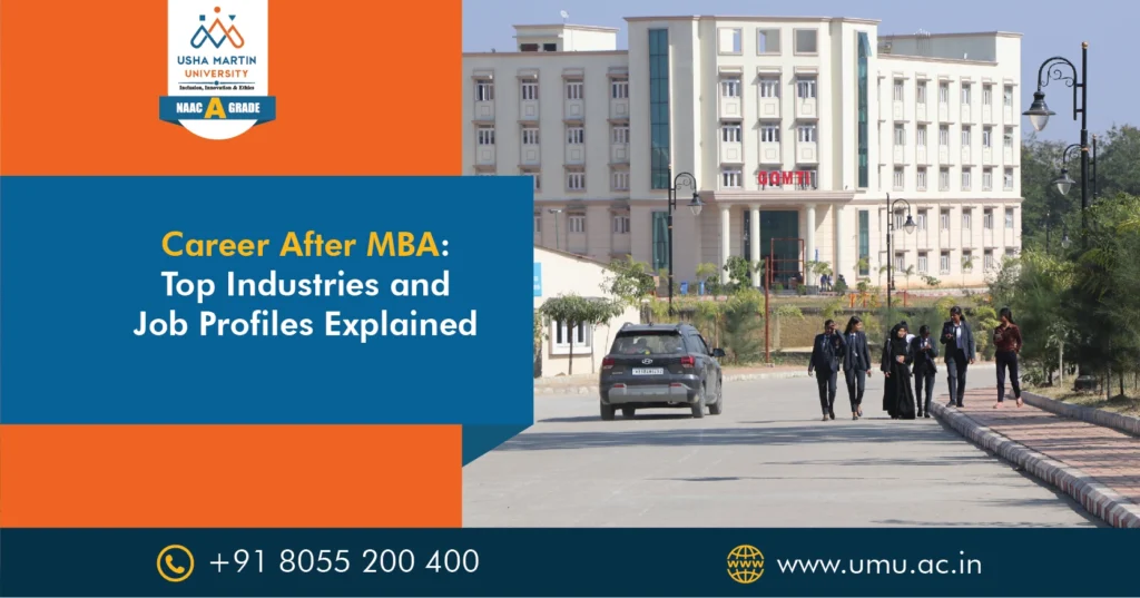 The actual value of an MBA degree comes into play when it is utilized. It transcends theory and improves decision-making, problem-solving, and thinking on a global scale. In this article, here, we will consider career prospects after an MBA, the industries that recruit the maximum number of MBA graduates, job roles you can target, and why Usha Martin University is among the best options for your MBA admission in Jharkhand.