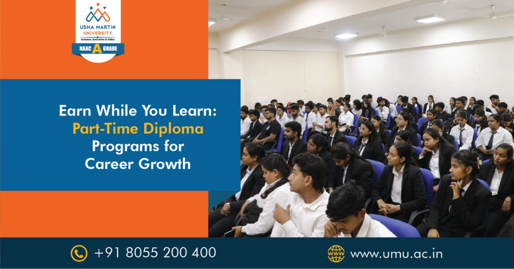 Part time Diploma courses at Usha Martin University (UMU) in Ranchi are specially designed for working professionals who wish to enhance their skills and qualifications without disrupting their ongoing careers. These flexible programs are offered in various technical fields, including Civil, Electrical, and Mechanical, providing a vital balance between academic rigor and practical learning relevant to today’s industry demands.