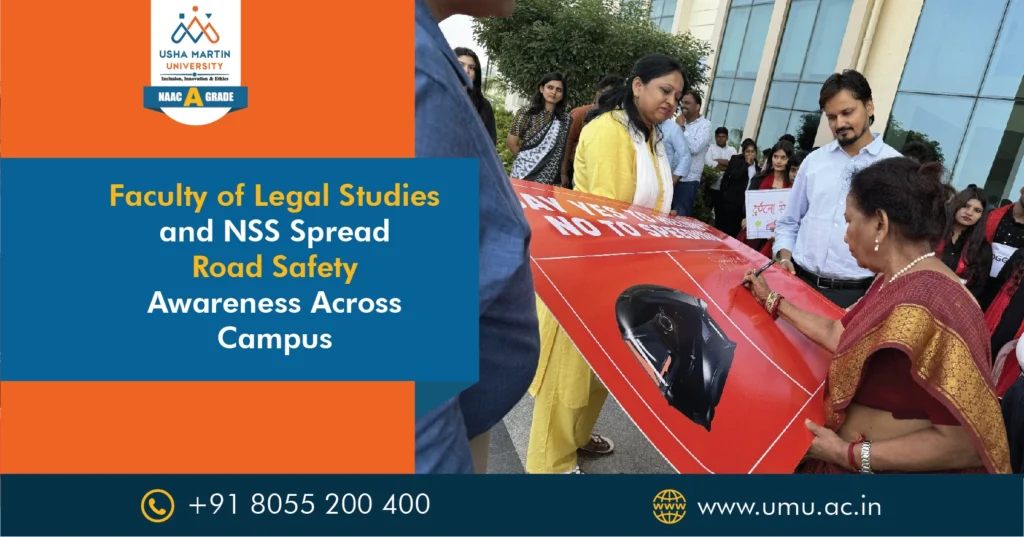 The Usha Martin University UMU Road Safety Awareness Campaign was not merely an activity—it was a movement of awareness and transformation. The message “Helmet On. Speed Gone. Life On!” echoed throughout the campus, inviting one and all to remember that road safety starts with individual responsibility.
