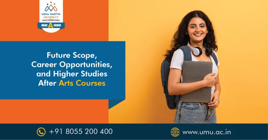At Usha Martin University, one of the best arts colleges in Jharkhand, students are given integrated training that harmonizes academic schooling with real-world exposure. With liberal arts course admission processes and extensive subject options, the university makes sure that students are able to match their studies with their dreams. Let us see the scope, career prospects, and further study options after finishing an arts degree, and why this stream is still one of the most adaptable options for students.