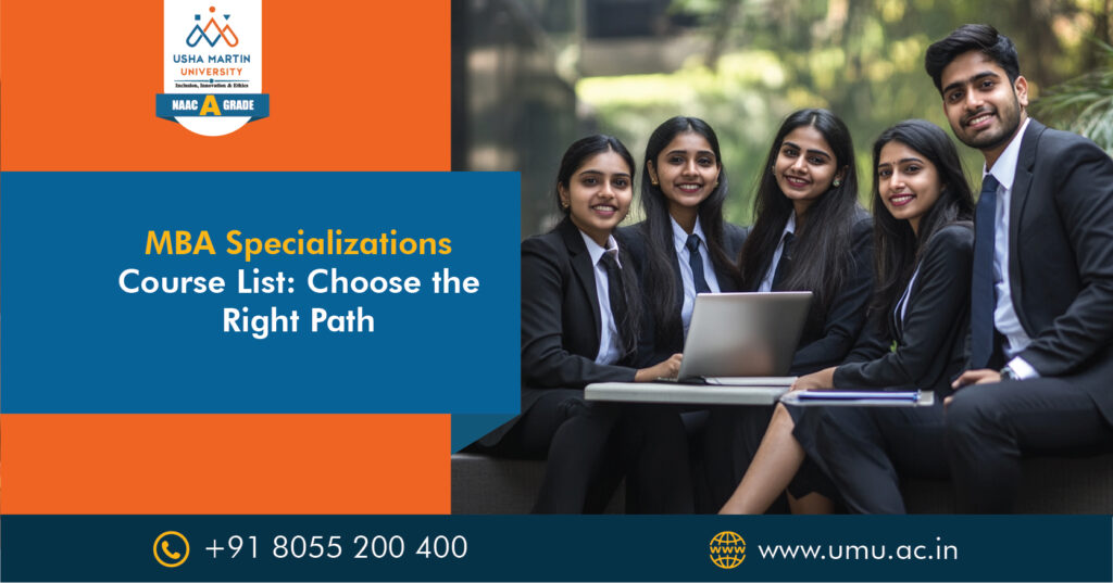 Usha Martin University offers a comprehensive MBA specialization course designed to prepare students for leadership roles in marketing, finance, human resources, and information technology.